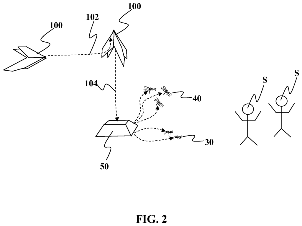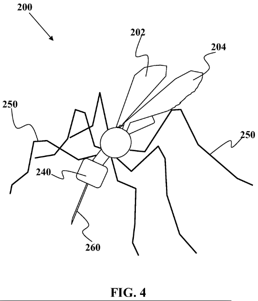 Recently in a story by Zerohedge there was mention diabolical patent from 2015 that recently had it’s application granted 2022-12-06. The patent describes an evasive, flying, 5mg mosquito like drones that can be disbursed by vehicle and be used to track people, gather information and deliver ‘drugs’.